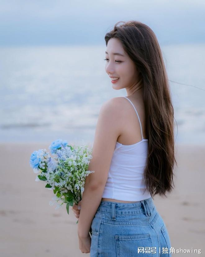 白色吊带紧身背心搭与宽松牛仔裤,很平常搭配,在美女高颜值的加持下,配合海边的场景,整体感觉如国,有种初恋的感觉,浪漫而唯美,白色纯棉紧身吊带时尚个性,显得格个净,现实穿搭中,像这种白色吊带,绝对是街头狂街的首选,就面料和款式而言,它穿着非常舒适,而且是紧身款式,能够完美的展现上身的曲线。